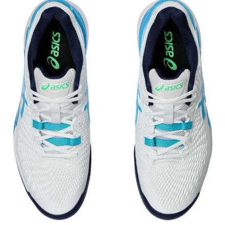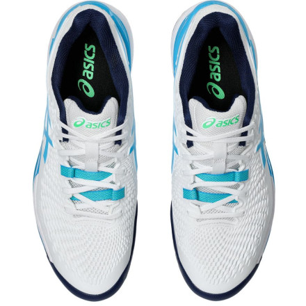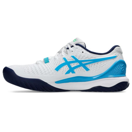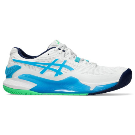 Модель: Gel-Resolution 9 / Тип обуви: для большого тенниса / Тип подошвы: универсальный / Материал верха: полиуретан / Материал подкладки: синтетический материал / Материал подошвы: резина / Дополнительные цвета: голубой Цвет: белый / Пол: мужской