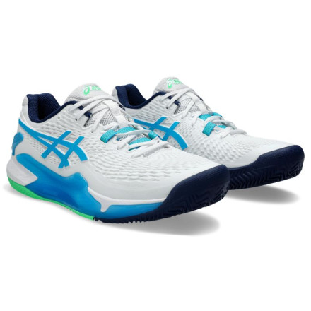 Модель: Gel-Resolution 9 / Тип обуви: для большого тенниса / Тип подошвы: грунт / Материал верха: полиуретан / Материал подкладки: синтетический материал / Материал подошвы: резина / Дополнительные цвета: голубой Цвет: белый / Пол: мужской