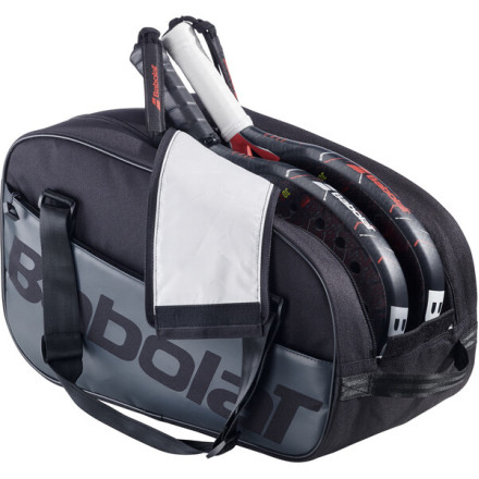 Практичная и вместительная сумка для паделя. Имеет три основных отделения, одно из которых предназначено для ракеток. Остальные отделения предназначены для одежды и другого снаряжения. Два внешних боковых кармана на молнии для аксессуаров. Отдельное отделение для обуви или мокрой одежды. Два регулируемых плечевых ремня и ручка для вертикального размещения обеспечивают комфорт при использовании и переноске. Вся сумка выполнена из мягкого материала, сохраняющего форму.
