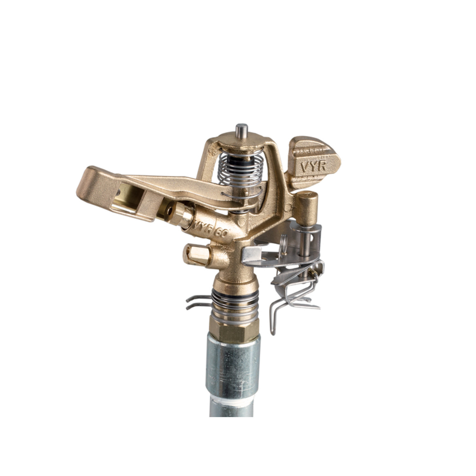 Большой поверхностный дождеватель с диаметром круга орошения 32 м, обеспечивающий полив общей площади 800 м². Угол полива регулируется от 20° до 340° или по кругу. Подключение 3/4 дюйма. Без штатива.