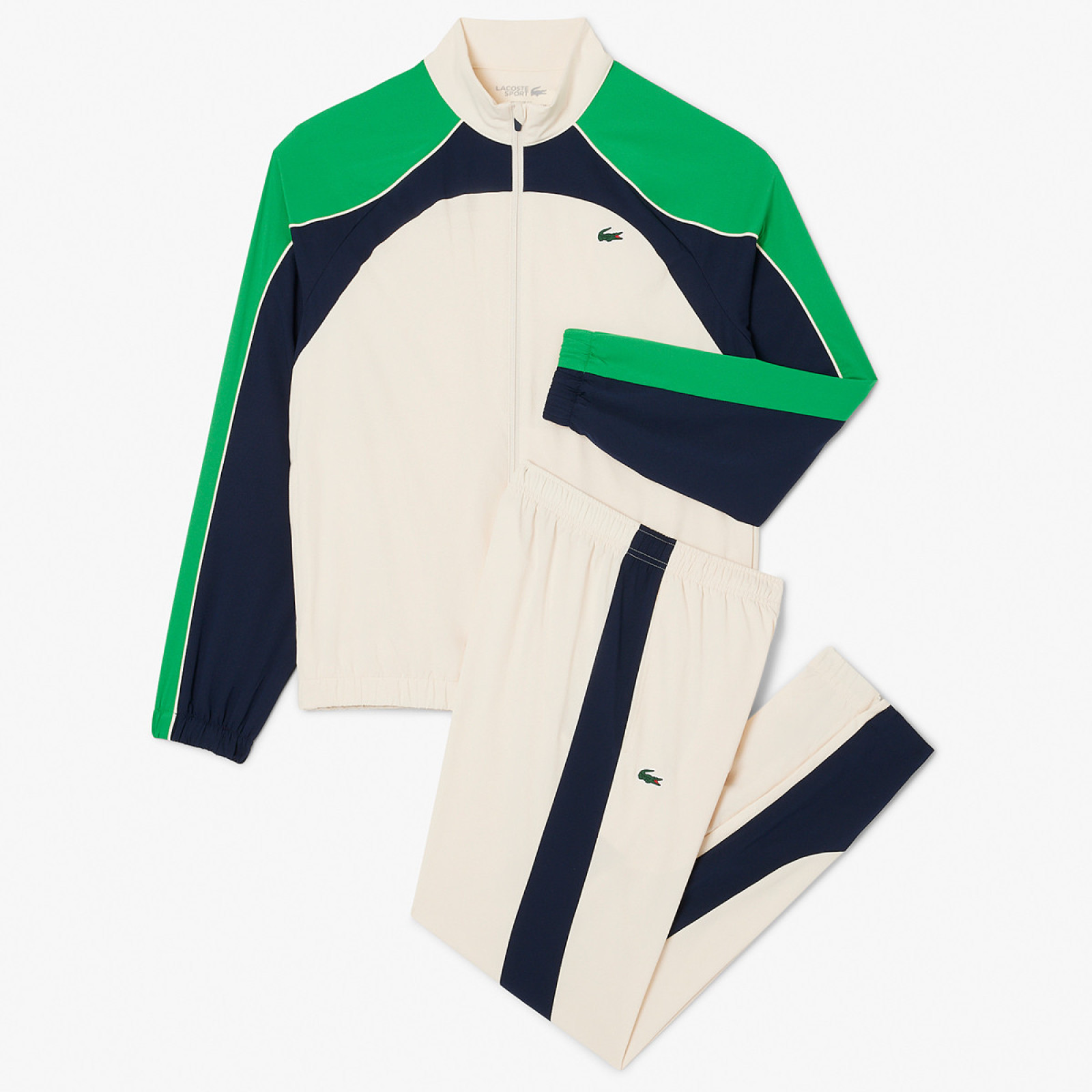 Этот спортивный костюм, состоящий из двух частей, идеально подходит для тренировок или игр на свежем воздухе. Куртка застегивается на молнию по всей длине. Слегка приподнятый воротник обеспечивает защиту. Низ куртки и рукава отделаны эластичной резинкой для лучшей посадки и комфорта во время занятий спортом. Два боковых кармана на молнии. Брюки имеют эластичный пояс с внутренним шнурком для плотной посадки. Два открытых боковых кармана с внутренней сеткой для лучшей вентиляции. Штаны отделаны эластичными манжетами и короткой боковой молнией для удобства надевания. Спортивный костюм изготовлен с использованием технологии STRETCH, BREATHABILITY.