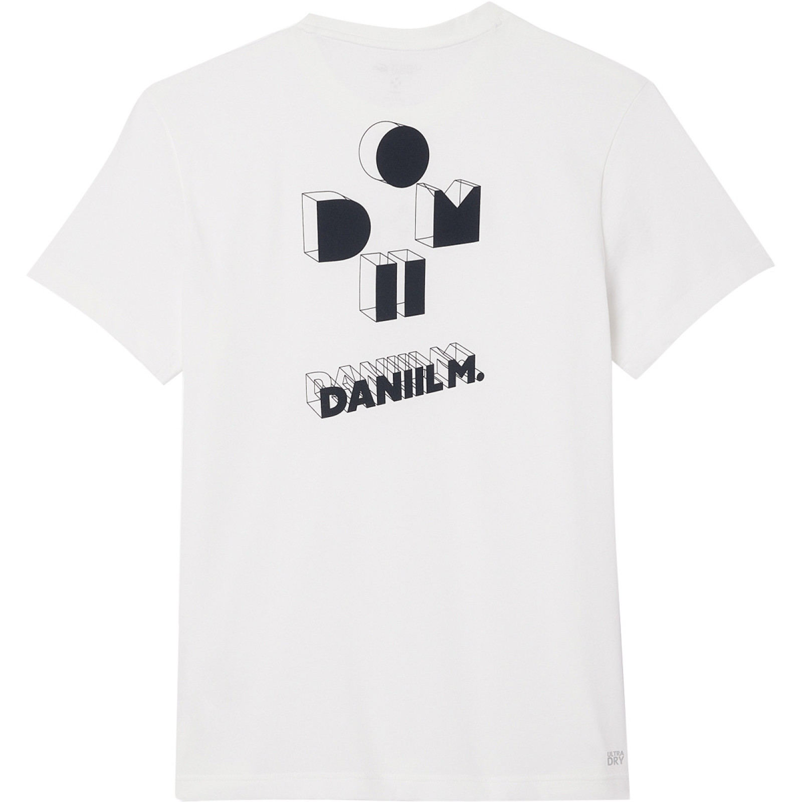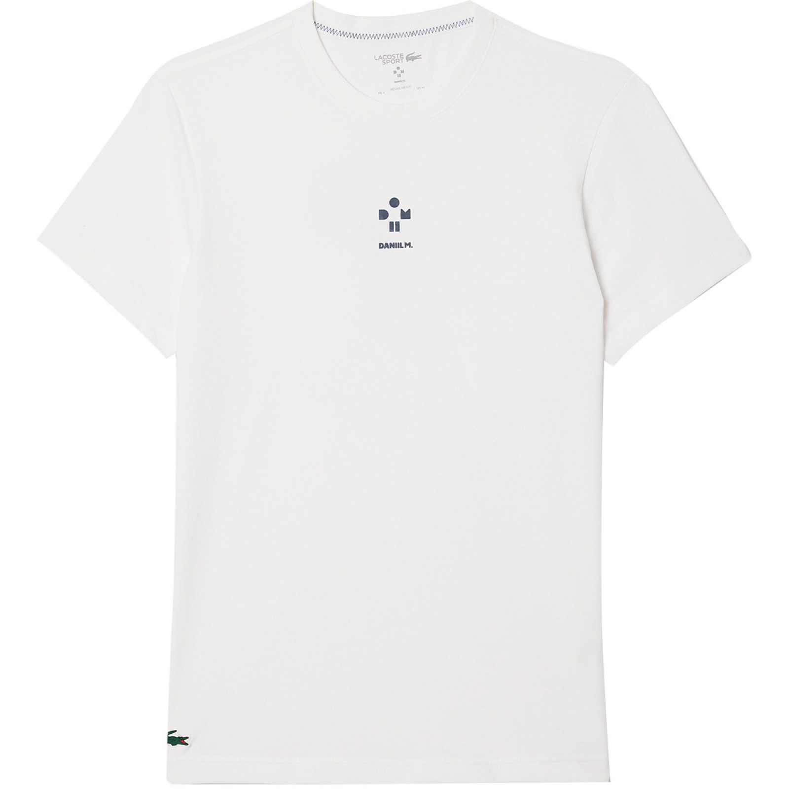 Футболку украшает логотип Даниила Медведева, выполненный в стиле видеоигры, спереди и сзади.