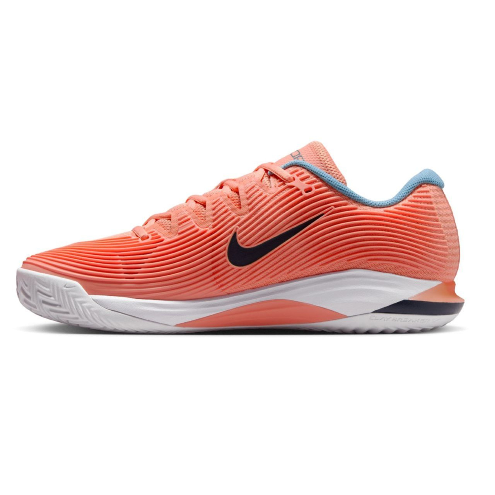 Двенадцатое обновление культовой серии обуви Air Zoom Vapor было проведено на основе отзывов как профессиональных, так и любительских игроков, а также данных об износе от Хольгера Руне . Модель обеспечивает еще большую легкость и динамику движения, сохраняя при этом высокий комфорт и имеющуюся, превосходную устойчивость. Усовершенствованный сетчатый верх высокой плотности обеспечивает отличную воздухопроницаемость, а формованные полиуретановые усиления в ключевых зонах защищают зоны повышенного износа на медиальной стороне и вокруг носка, не добавляя при этом веса. Прочная пластина, окружающая среднюю часть стопы, обеспечивает превосходную поддержку стопы, гарантируя уверенность при резких скольжениях, поворотах и смене направления. Внутренний носок доходит до середины верха, улучшая посадку и обеспечивая дополнительную боковую стабилизацию стопы. Использование знаменитой газовой подушки Zoom Air в пятке обеспечивает высочайший уровень амортизации с динамическим отскоком и эластичностью для следующего шага. Специальный протектор подошвы CLAYBREAKER , разработанный на основе карт давления и анализа участков с наибольшим скоплением глины, обеспечивает превосходное сцепление на грунтовых кортах и снижает налипание осадка.