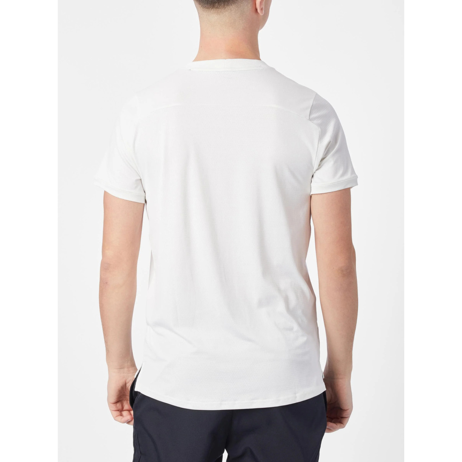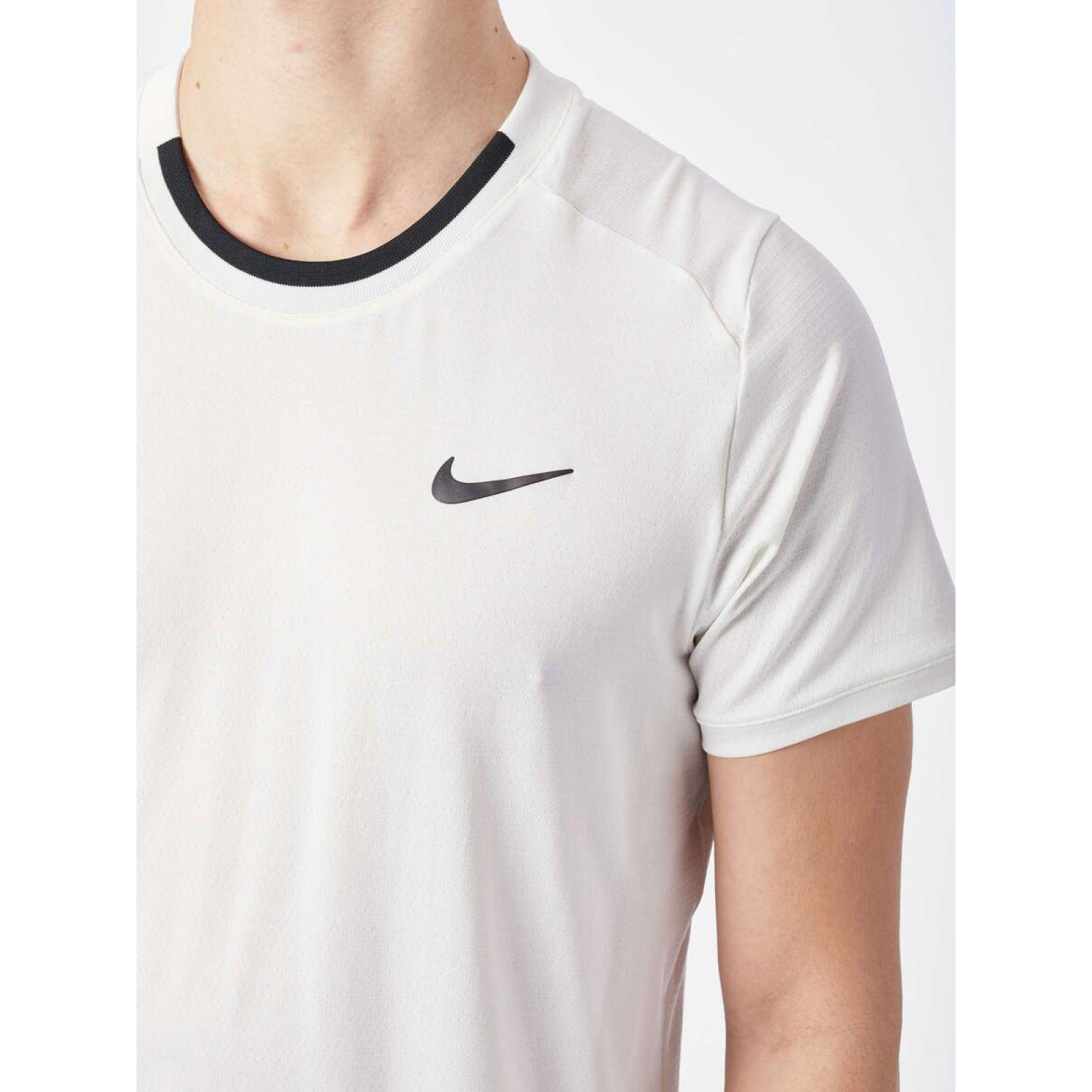 Легкая футболка из полиэстера облегающего кроя. Слегка эластичная ткань адаптируется к вашим движениям. Микроперфорация по всей длине обеспечивает достаточную вентиляцию, а укороченный подол усиливает защиту. Круглый вырез горловины с контрастной полосой добавляет стильный вид. Изготовлена из быстросохнущей, дышащей ткани с технологией DRI-FIT .