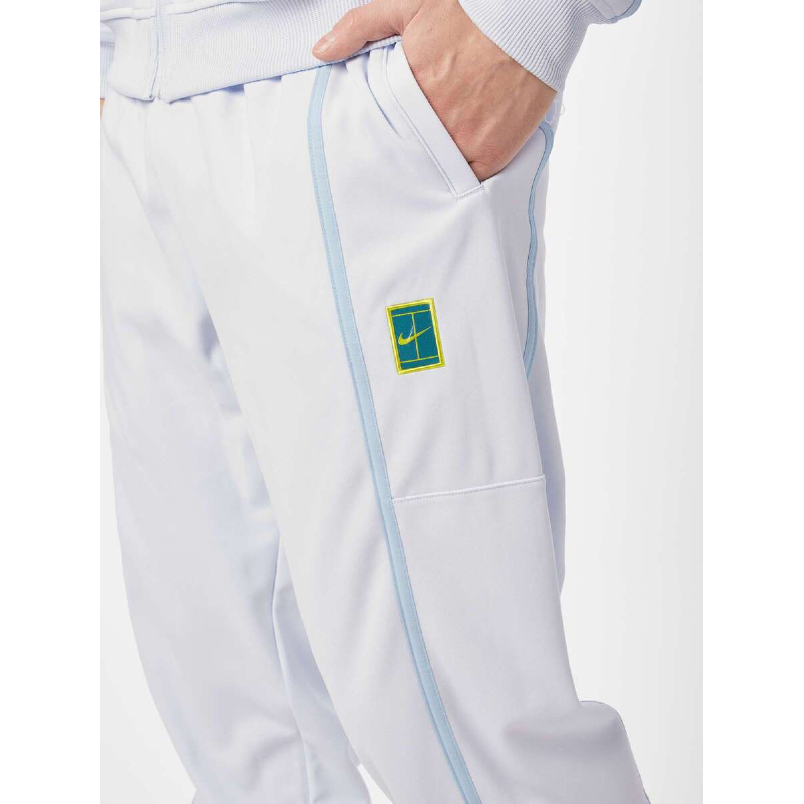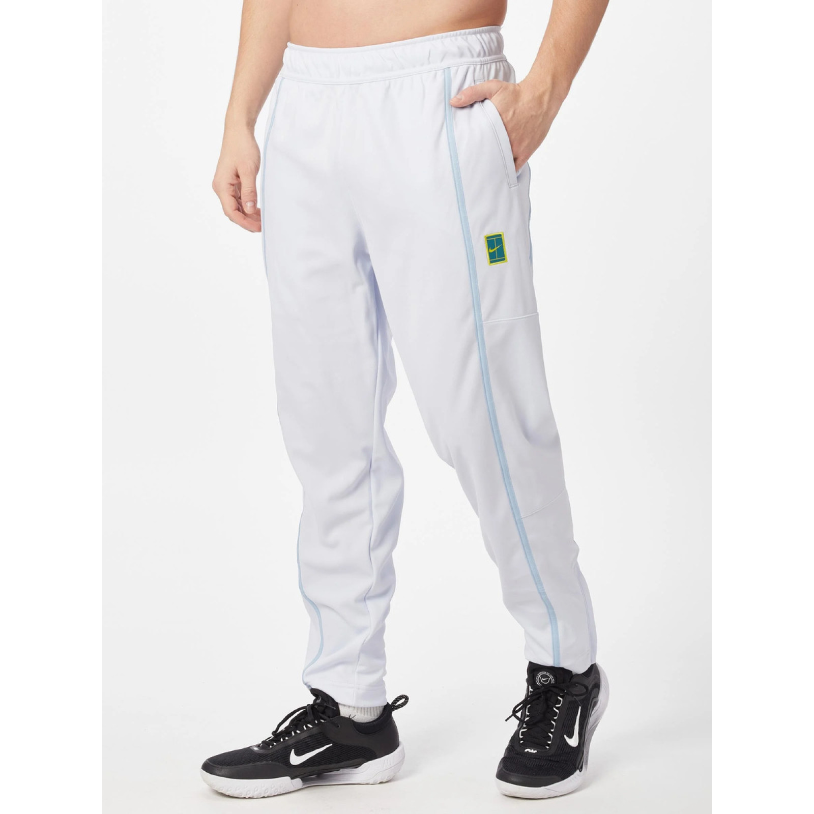 Спортивные брюки стандартного покроя. Эластичный пояс с внутренним шнурком для идеальной посадки. Штаны из легкого дышащего материала. Имеют два боковых кармана из перфорированного материала для повышенной вентиляции. Штаны можно частично расстегнуть с помощью молний . Плоские швы минимизируют риск потертостей и раздражения. На левой стороне виден культовый логотип Nike Heritage.