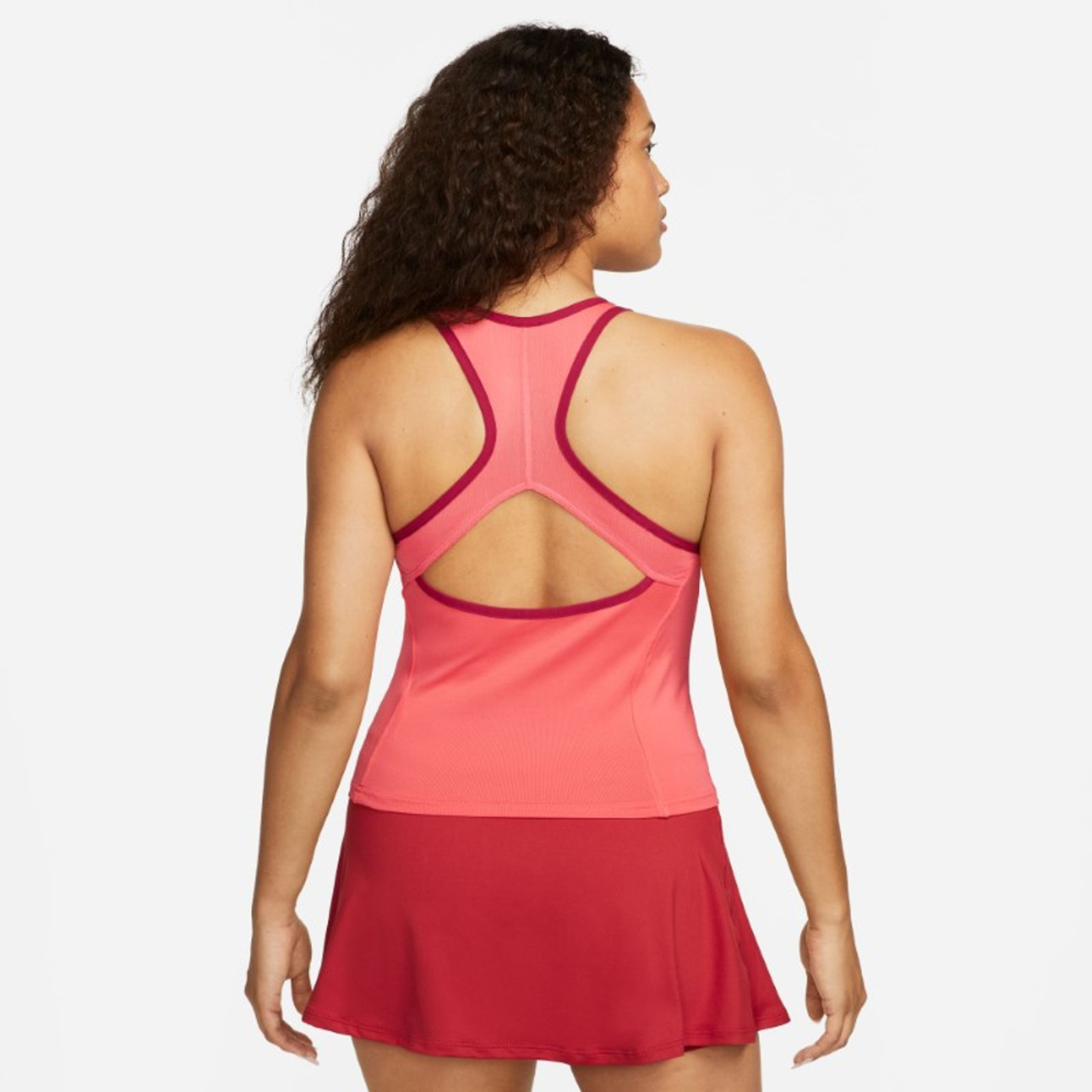 Приталенный, подчеркивающий фигуру крой. Эластичные лямки обеспечивают комфорт. Несколько сетчатых зон и перфорированная ткань обеспечивают отличную вентиляцию. Слегка эластичный материал адаптируется к вашим движениям, обеспечивая комфорт и удобство во время занятий спортом. Классический логотип производителя расположен по центру. Верх выполнен из лёгкого, комфортного трикотажа с использованием  технологии DRI-FIT .