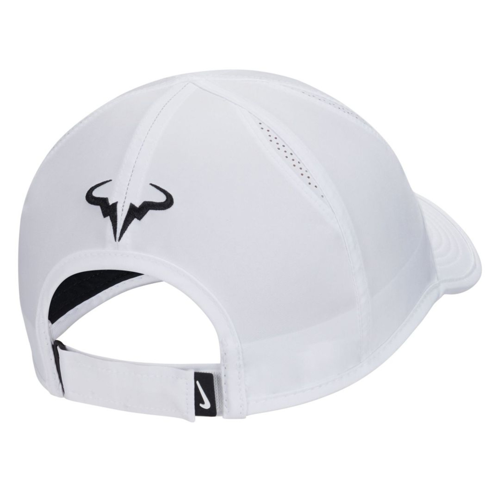 Легкая и дышащая кепка с классическим кроем. Выполнена из высококачественного полиэстерового материала, который прочен, быстро сохнет и хорошо держит форму. Вставки из сетчатого материала обеспечивают улучшенную вентиляцию и комфорт во время активности. Жесткий изогнутый козырек гарантирует оптимальную защиту. Регулируется сзади с помощью застежки на липучке. Спереди украшена крупным логотипом Рафаэля Надаля, сзади — меньшим логотипом Рафа. На левой стороне расположено лого Nike. Кепка изготовлена с применением технологии DRI-FIT.