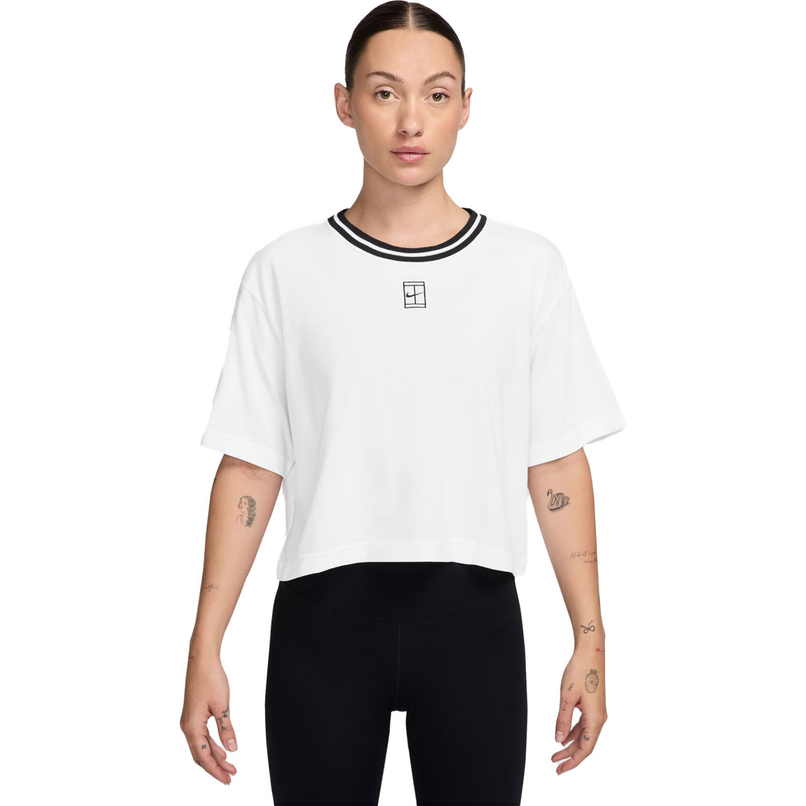 Женская укороченная футболка Nike Dri-FIT Heritage сочетает в себе современный дизайн и функциональность, идеально подходя как для спортивных занятий, так и для повседневного образа. Технология Dri-FIT эффективно отводит влагу, обеспечивая ощущение сухости и комфорта. Легкий и мягкий материал обеспечивает приятные ощущения при каждом движении. Модный укороченный крой придает стильный и современный вид, а лаконичный дизайн с культовым логотипом Nike добавляет спортивной элегантности.