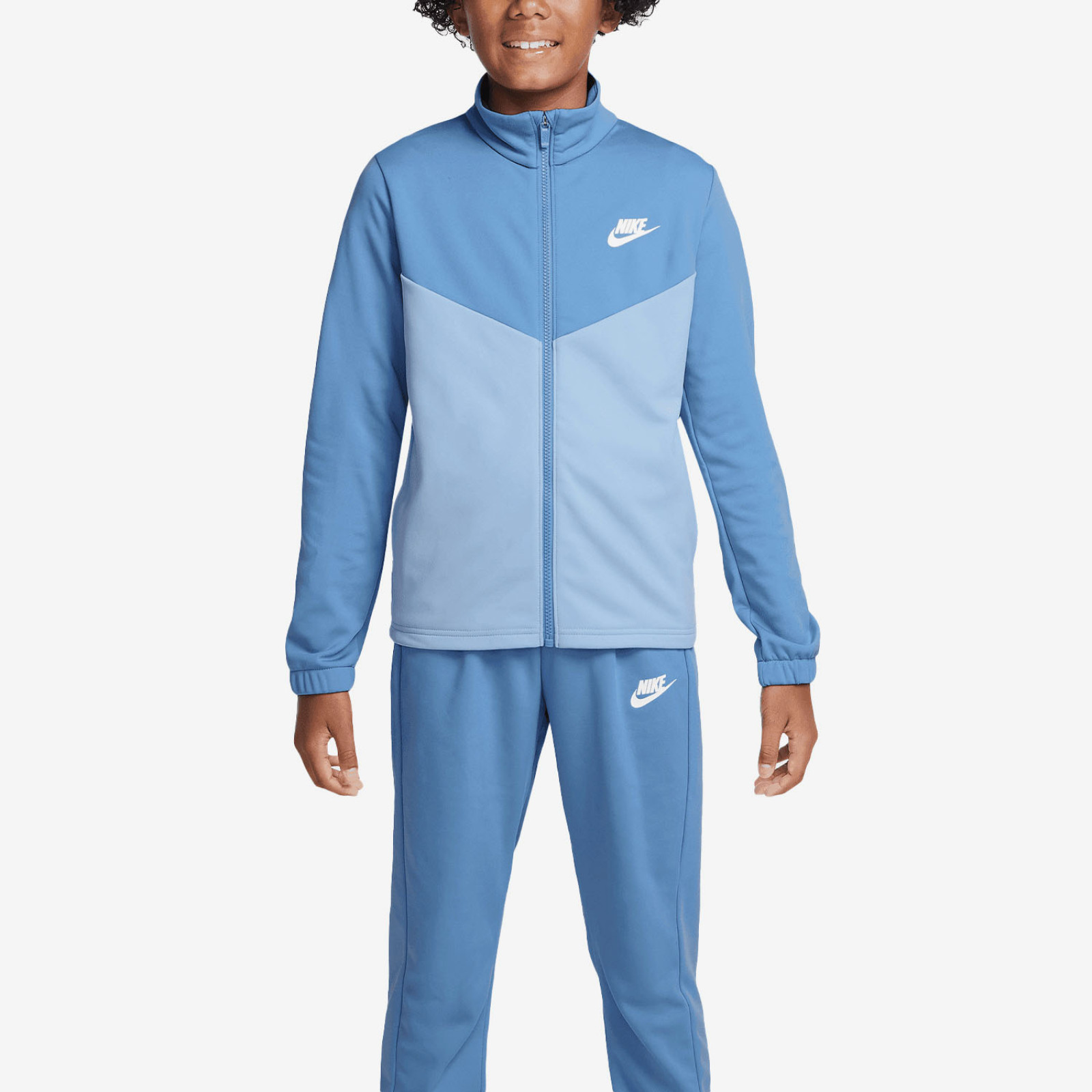 Толстовка застегивается на молнию по всей длине. Два открытых боковых кармана с перфорацией для лучшей вентиляции. Воротник-стойка защищает от холода. Рукава отделаны резинкой для плотной посадки. Брюки имеют широкий эластичный пояс для плотной посадки и комфорта во время занятий спортом. Два открытых боковых кармана. Для дополнительного комфорта и посадки брючины отделаны резинкой. Спортивный костюм выполнен из мягкой на ощупь ткани с технологией DRI-FIT.